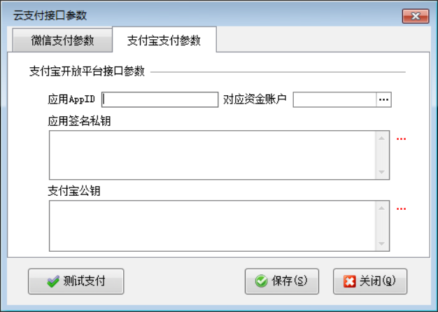 在功能導航窗選擇“擴展應用”—》“云支付參數”,可以設置支付寶和微信支付的參數信息。由于設置比較專業,購買服務后可聯系客服協助配置參數。