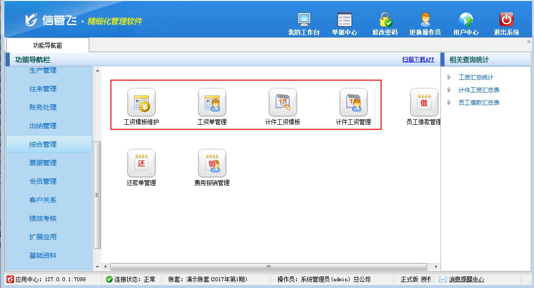 工資管理功能的典型功能截圖如下: