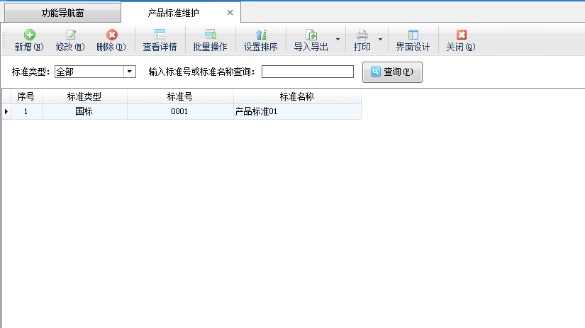 ????在功能導航窗點擊“擴展應(yīng)用”—》“產(chǎn)品標準維護”可以打開產(chǎn)品標準維護界面,可以維護產(chǎn)品標準。