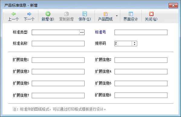 打印:在工具欄點“打印”—》“打印”可以快速打印產(chǎn)品標準列表;點“打印格式設(shè)計”可以打開“打印格式設(shè)置”窗口,可以新增、修改、刪除打印格式模板。