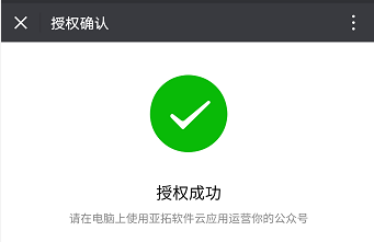 ????在手機微信上點擊“授權(quán)”后,會彈出一個授權(quán)成功界面。如下圖所示: