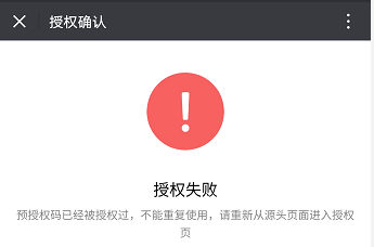????另外,如果掃描公眾平臺二維碼,點擊授權(quán)時出現(xiàn)以下提示,請聯(lián)系我們解決。