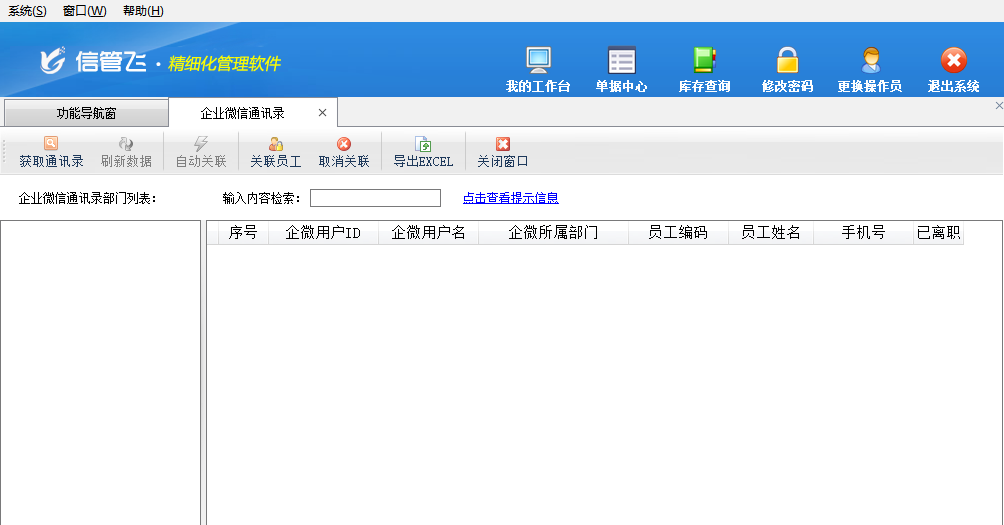 獲取通訊錄:點擊“獲取通訊錄”,可以獲取獲取企業(yè)微信后臺的微信通訊錄。