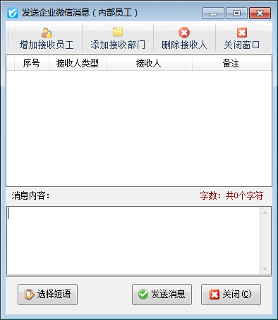 ????在功能導航窗點擊“擴展應(yīng)用”—》“發(fā)送企微消息”可以打開發(fā)送企業(yè)微信消息窗口,可以編輯消息內(nèi)容對企業(yè)內(nèi)部員工發(fā)送微信企業(yè)消息,其界面如下圖所示。