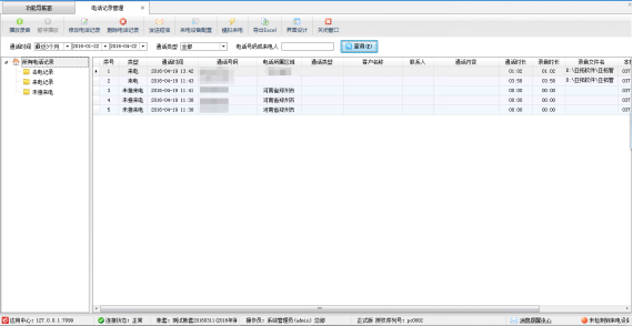 ????在功能導航窗點擊“擴展應(yīng)用”—》“電話記錄管理”即可進入來電彈屏功能模塊,其界面如下圖所示: