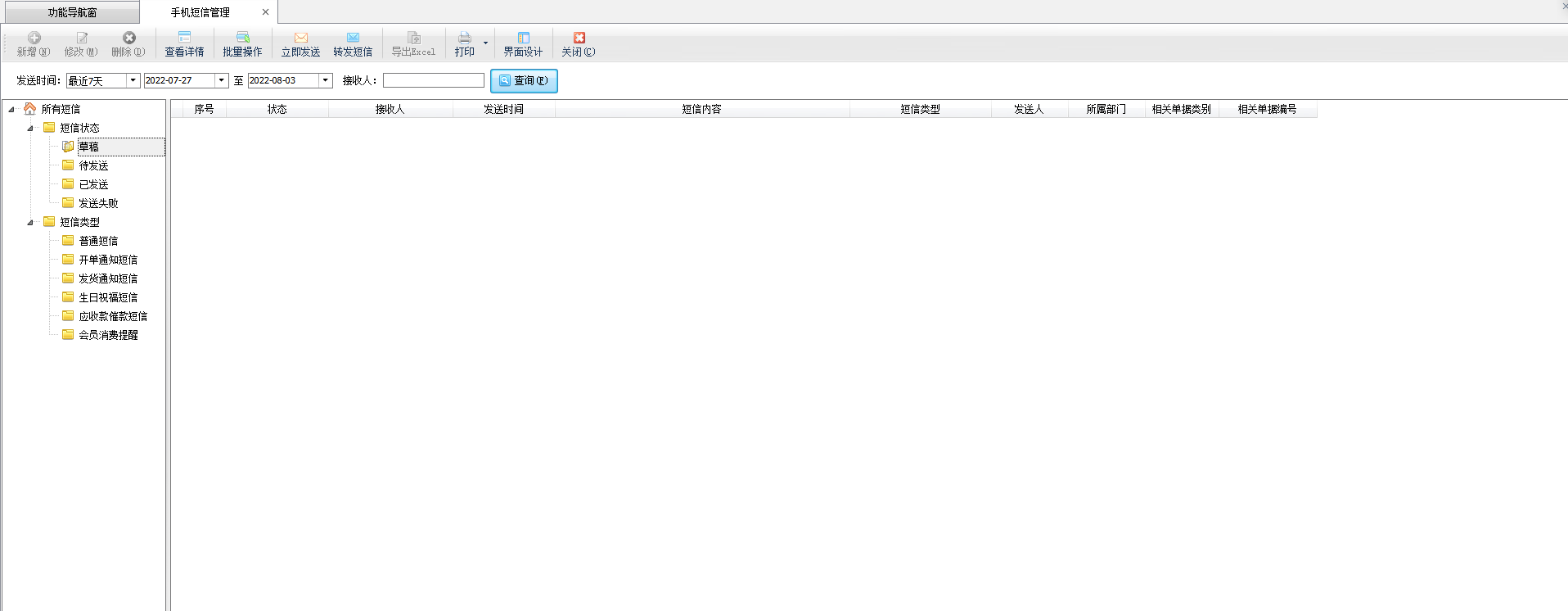 發(fā)送短信:在工具欄中點擊“發(fā)送短信”按鈕可以打開發(fā)送短信窗口,可以發(fā)送短信。