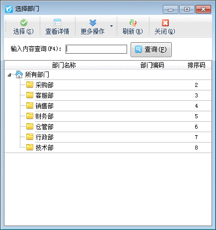 ????選擇部門,然后點擊“選擇”按鈕,或者直接雙擊部門節(jié)點即可。