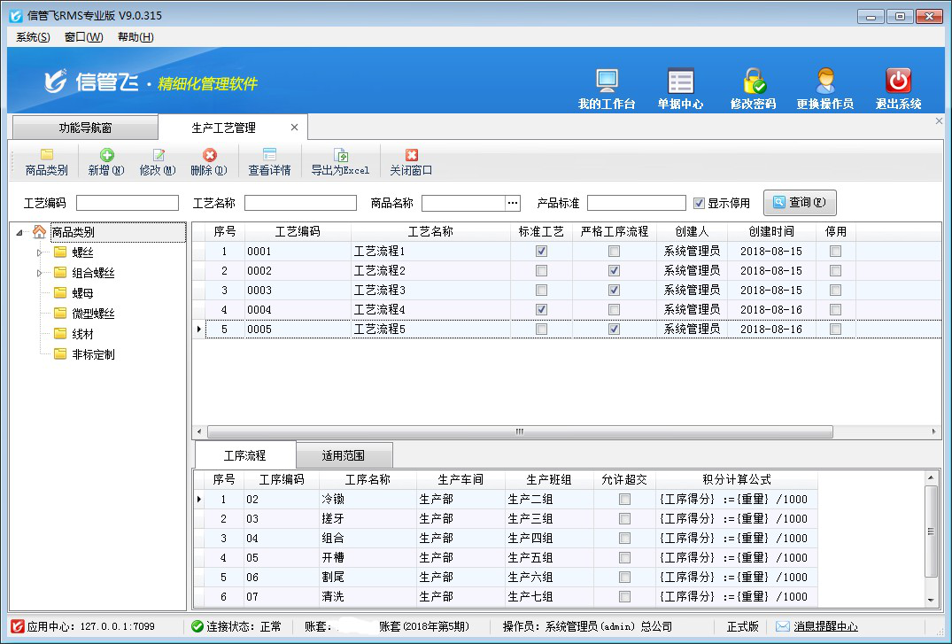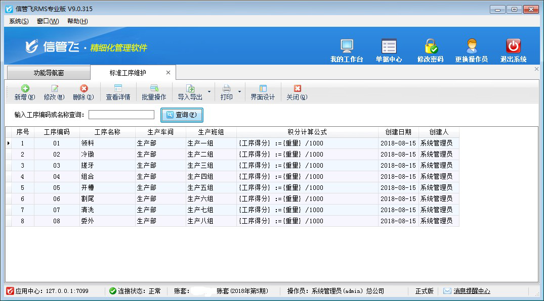 ????生產(chǎn)工序管理用于管理整個生產(chǎn)過程中各工段加工產(chǎn)品的次序,材料經(jīng)過各道工序,最終加工成成品。通過對整個生產(chǎn)活動的分階段進(jìn)行管理,使各階段銜接的良好有序,從而可以能提高產(chǎn)品質(zhì)量和勞動生產(chǎn)率。