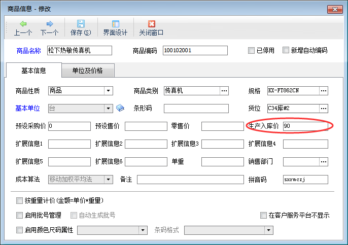 入庫單價:進(jìn)入倉庫的成本價,軟件默認(rèn)取商品信息中的“生產(chǎn)入庫價”,也可以設(shè)置為根據(jù)原料金額和直接費(fèi)用等核算出成本價。