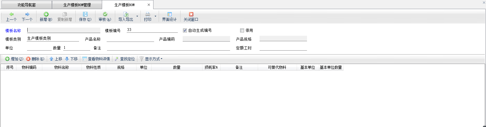 修改模板:點(diǎn)工具欄中的“修改”按鈕,可以對生產(chǎn)模板信息進(jìn)行調(diào)整。