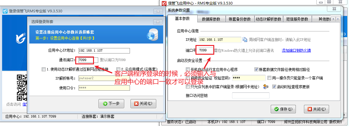 ????②軟件的默認(rèn)端口為7099,根據(jù)需要可調(diào)整為其他端口,但客戶(hù)端登錄的時(shí)候要與此端口一致。