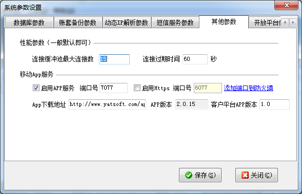 ????系統參數設置主要包括基本參數、數據庫參數、賬套備份參數、動態 IP 解析參數、短信服務參數、其他參數等。