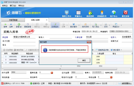 # 6.2.7 信管飛RMS軟件如何修改應付款已結銷的采購入庫單?