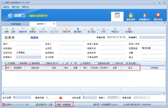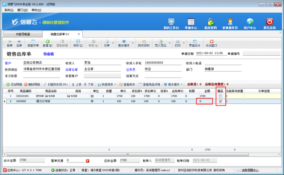 ????在實際產品銷售過程中,會出現贈送客戶贈品的情況,信管飛RMS、信管飛送貨單軟件、信管飛倉庫管理軟件開單時都支持錄入贈品商品,本篇文章以進銷存管理軟件為例介紹一下開單時如何錄入贈品?