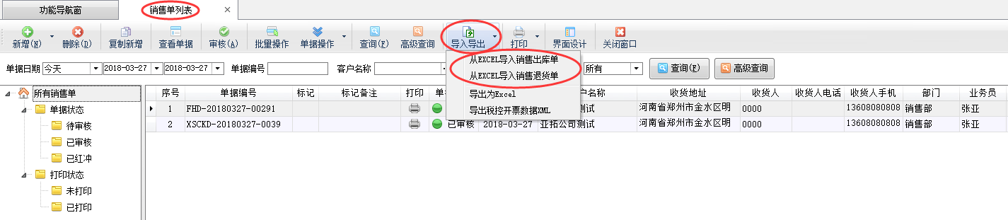 ????亞拓管理軟件(進銷存管理軟件)支持通過Excel導入數據,最新版本(V8.5.229)在銷售單列表增加了從EXCEL批量導入銷售出庫單及銷售退貨單的功能(圖一),本篇文章我們以亞拓管理軟件專業版為例詳細介紹一下批量導入銷售單功能?