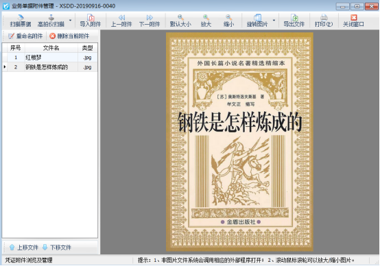 ????新增一個銷售出庫單,如圖1所示,單據保存后,點擊工具欄中的“附件資料”按鈕,可以進入“附件資料管理”界面,如圖2所示,可掃描或導入與票據相關的電子文件。