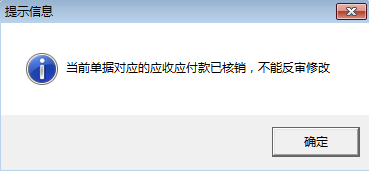 ????亞拓軟件自主開發的信管飛RMS軟件支持將采購入庫單進行付款結銷操作,有時可能存在采購單商品明細開錯的情況。如果當前采購入庫單的應付款已結銷,軟件是不允許再修改此單據的,如下圖所示: