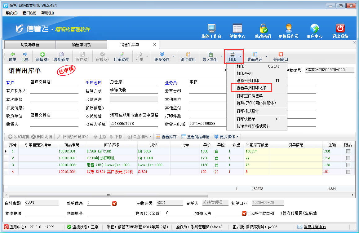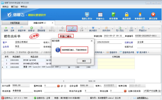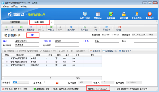 ????信管飛倉庫管理軟件、信管飛RMS軟件等支持新增多個操作員并可設置操作員權限,有用戶需要開銷售單需要多人審核,軟件支持設置多級審核,本文以“信管飛倉庫管理軟件”為例示范下單據多級審核功能如何使用?
