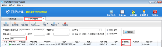 ????采購單明細查詢中的擴展信息項是調用采購單界面的單據明細中的擴展信息。如需要查詢單據主體中調用的擴展信息項,請在“采購單匯總表”中設置查詢。