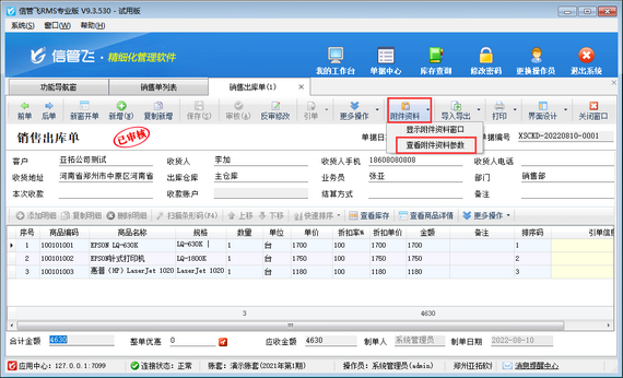 ????信管飛RMS軟件是進銷存一體化的軟件,支持開單上傳附件資料管理單據附件,本篇文章以信管飛RMS專業版為例介紹一下如何設置打開銷售出庫單可直接查看附件資料窗口?