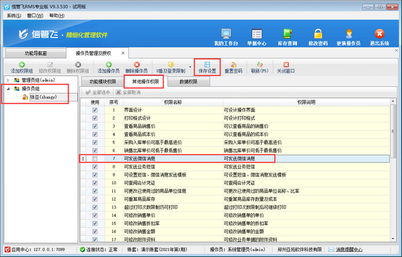 # 6.2.97 進銷存管理軟件如何設置操作員不可發送微信消息?