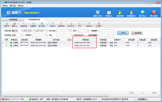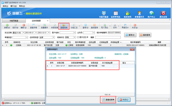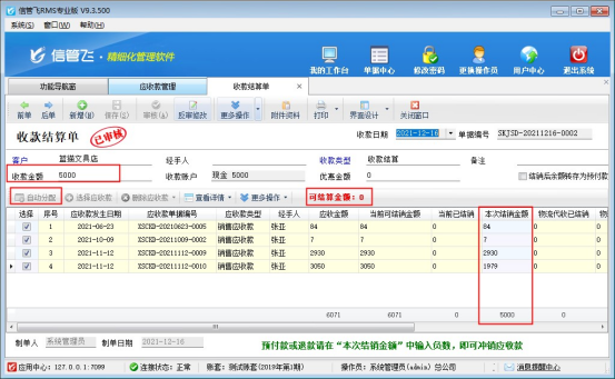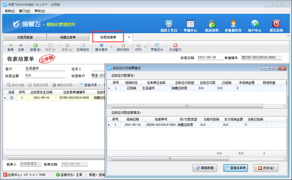 ????結(jié)算單審核完成后會影響應收款的結(jié)銷狀態(tài)。如果需要按單據(jù)進行分批結(jié)銷可參考此文章:信管飛RMS 軟件如何按單據(jù)部分結(jié)銷應收款?