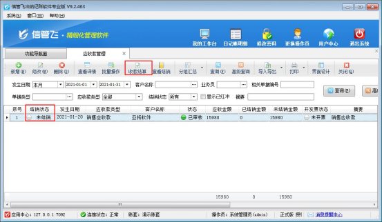 # 6.3.9 出納記賬軟件中如何對應收款進行收款結(jié)算?