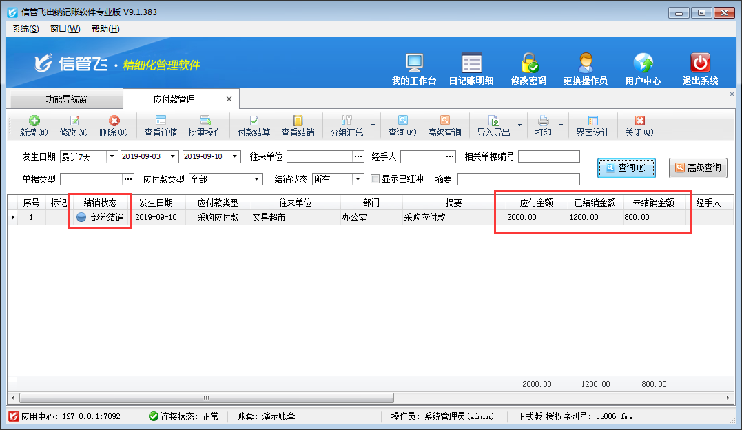 ????部分結(jié)銷狀態(tài)的金額可以繼續(xù)結(jié)銷,直到變?yōu)橐呀Y(jié)銷狀態(tài)。出納軟件的結(jié)算單可轉(zhuǎn)記出納憑證,可參考文章:出納軟件如何設置結(jié)算單保存或?qū)徍藭r提醒轉(zhuǎn)記日記賬?