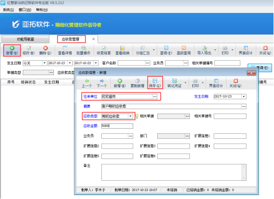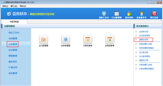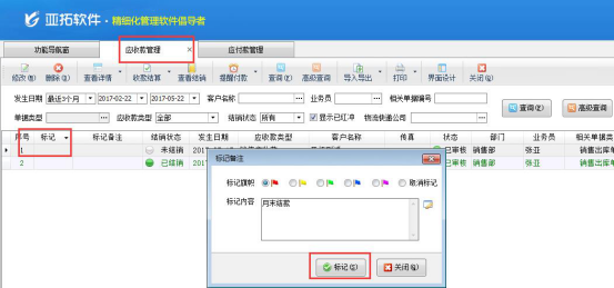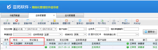 ????亞拓管理軟件和紅管家倉庫管理軟件都可以對應收款管理、應付款管理進行標記備注。送貨單軟件的應收款管理中也可以對應收款進行標記備注。下面我們以亞拓管理軟件專業(yè)版為例,介紹對應收款管理標記備注的操作步驟(應付款和應收款操作一致)。