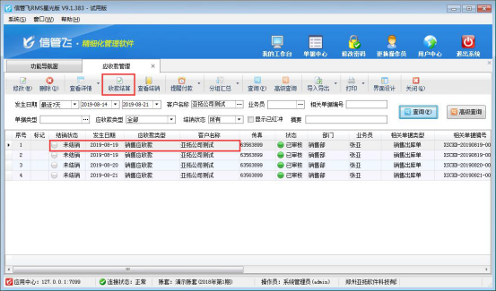 ????收款結(jié)算單用來登記收款信息(收款對象即客戶、收款賬戶、收款金額、經(jīng)手人等),并結(jié)銷應收款記錄。本篇文章以信管飛RMS軟件為例演示一下對應收款進行收款結(jié)算的操作步驟。