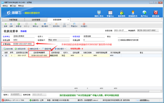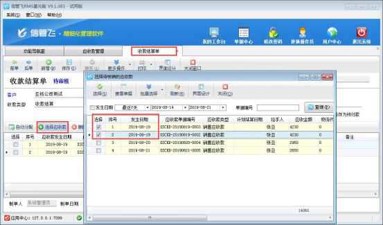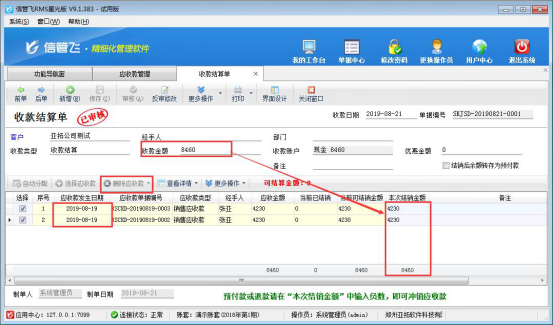 # 6.3.27 信管飛RMS軟件中如何對應收款進行收款結(jié)算?