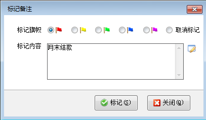 ????在“標記備注”窗口選擇標記旗幟,錄入標記內(nèi)容,然后點擊“標記”按鈕。如圖2所示: