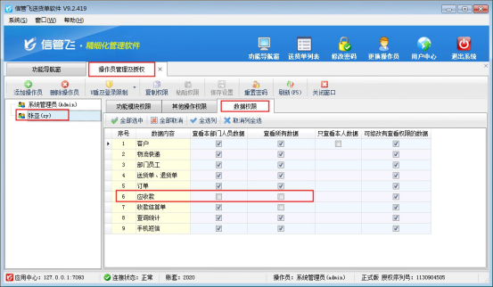 ????信管飛送貨單軟件是集送貨單開單打印和應收款管理為一體的軟件,軟件支持設置多操作員登錄以及可設置操作員的權(quán)限。有時需要操作員僅能開單,不可查看應收款記錄該如何設置?本文以“信管飛送貨單軟件”為例,示范如何設置操作員不可查看應收款?