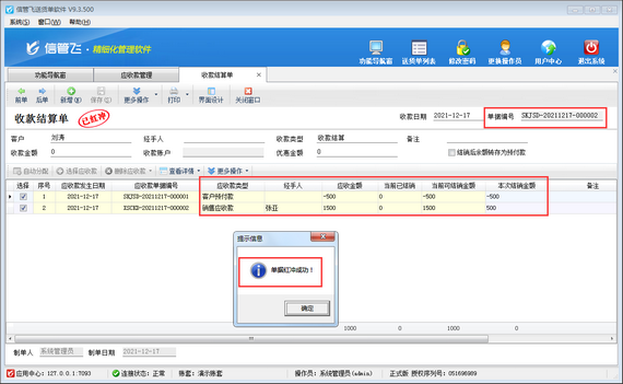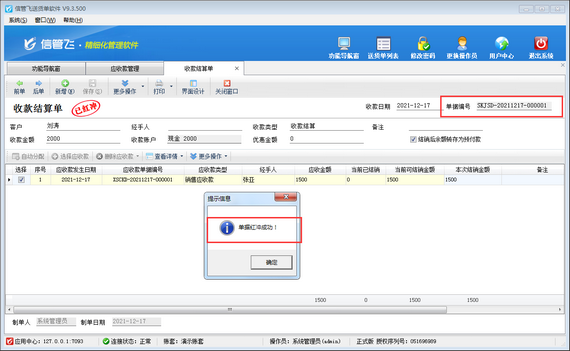 ????信管飛軟件包括信管飛RMS軟件、信管飛出納記賬軟件、信管飛送貨單軟件(送貨單軟件只有應收款),支持對應收應付款進行收付款結(jié)算操作,方便用戶查看收付款情況。對于客戶在結(jié)算時保存不了結(jié)算單,本篇文章以收款結(jié)算單進行示范下如何解決。