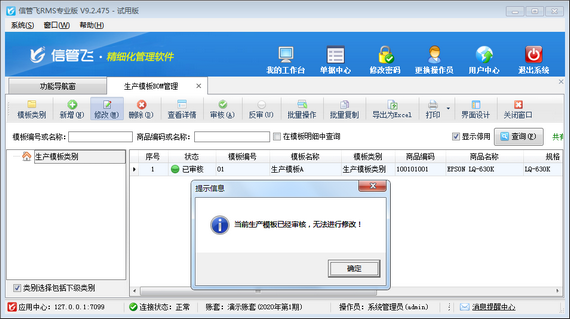 # 6.6.1 進銷存管理軟件如何修改(刪除)已審核的生產(chǎn)模板?
