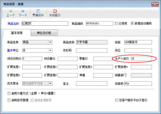 ????入庫單價:進入倉庫的成本價,軟件默認(rèn)取商品信息中的“生產(chǎn)入庫價”,也可以設(shè)置為根據(jù)原料金額和直接費用等核算出成本價。