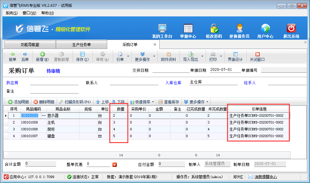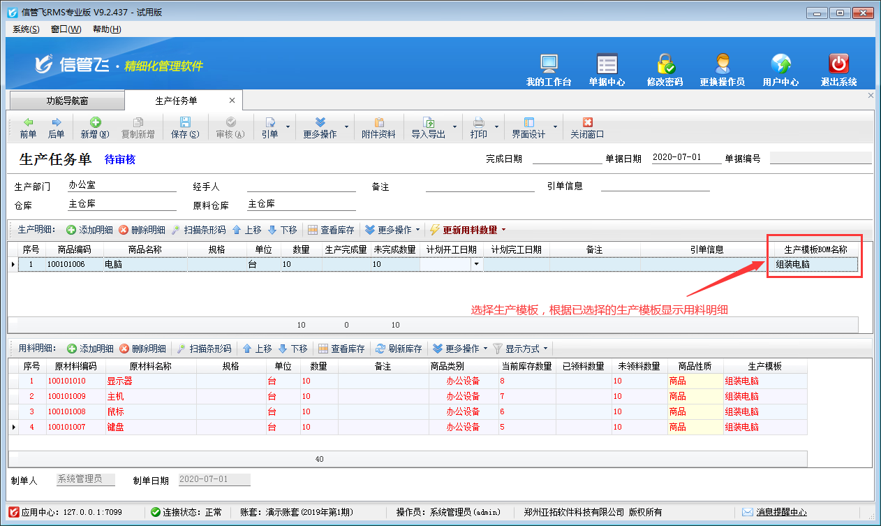 ????生產(chǎn)管理模塊是信管飛RMS(進銷存管理軟件)的擴展模塊,如需使用,是需要另外購買的,可聯(lián)系在線客服進行咨詢試用。