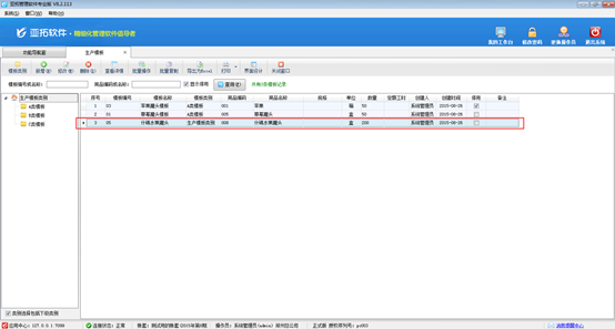 ????批量操作:在生產(chǎn)模板界面點工具欄中的“批量操作”按鈕,可以多選記錄,執(zhí)行批量刪除操作。