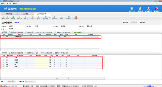 ????生產(chǎn)領(lǐng)料單是屬于生產(chǎn)管理模塊,生產(chǎn)管理模塊是屬于擴展模塊,只有在亞拓管理軟件專業(yè)版、紅管家倉庫管理軟件專業(yè)版中才能使用,下面我們來演示一下具體的操作步驟。