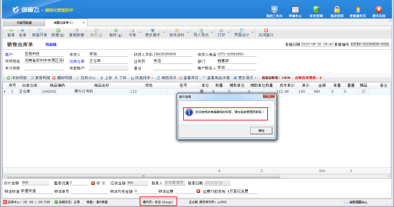此文章相關(guān)演示視頻:操作員修改單據(jù)編號時提示“您沒有修改單據(jù)編號的權(quán)限...”如何解決演示視頻 信管飛送貨單軟件、信管飛RMS、信管飛倉庫管理軟件等都支持開單自動生成單據(jù)編號,可根據(jù)此單據(jù)編號來查詢單據(jù)信息。為了更加自定義編號內(nèi)容,軟件支持修改自動生成的單據(jù)編號。部分用戶用操作員賬號登錄時,可能會出現(xiàn)編號無法進(jìn)行修改,提示“您沒有修改單據(jù)編號的權(quán)限,請與系統(tǒng)管理員聯(lián)系!”的情況,本篇文章以“信管飛RMS為例”介紹下如何解決這個問題。 用操作員“張亞”