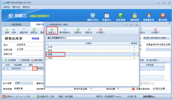 此文章相關演示視頻:如何使用維護數據字典 信管飛RMS軟件支持把一列常見內容可提前維護到一個數據字典中,方便開單時候直接選擇錄入,例如“顏色”,可以先把所有顏色屬性維護在數據字典中,開單直接使用。本文示范下如何操作? 在功能導航欄點擊銷售管理---打開銷售出庫單,在開單界面點擊界面設計,勾選擴展信息并自定義列名為“顏色”,取值方式選擇“數據字典”,如圖所示: “取值設置”內置有多種數據字典選擇,可以新增