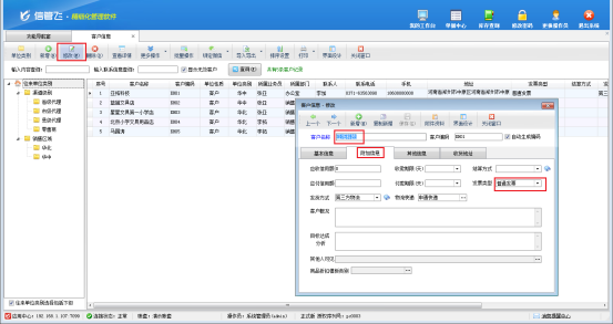 此文章相關演示視頻:信管飛RMS軟件中如何設置不同客戶的默認發票類型演示視頻 信管飛RMS軟件支持開銷售單界面選擇發票類型,可以根據實際需要選擇不同的開發票方式。在使用過程中,不同客戶需要的發票類型可能會不一樣,為了提高開單效率,有時需要對不同的客戶設置默認的發票類型,方便開單選擇客戶之后直接進行調取,本篇文章以信管飛RMS軟件為例介紹一下如何設置? 功能導航窗點擊“基礎資料”—》“客戶信息”打開客戶