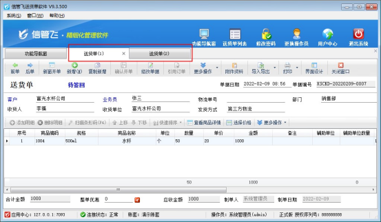信管飛送貨單軟件、信管飛RMS 軟件等都支持開銷售單以及自動匯總已開的銷售單,軟件默認是開單只能打開一張新開單據界面,保存后打開之前記錄默認只能打開一張。有客戶存在需要同時打開兩張銷售單的情況,軟件如何同時打開兩張單據可參考以下示范。 需要同時打開多張送貨單,需要設置下參數,在功能導航窗點擊“系統管理”—》“系統參數配置”,在業務參數中,勾選啟用參數“銷售單允許多窗口開單”,參數值可自己設置可同時打開的數字(3表示可同時打開三個界面),保存設置,如下圖所示: &n