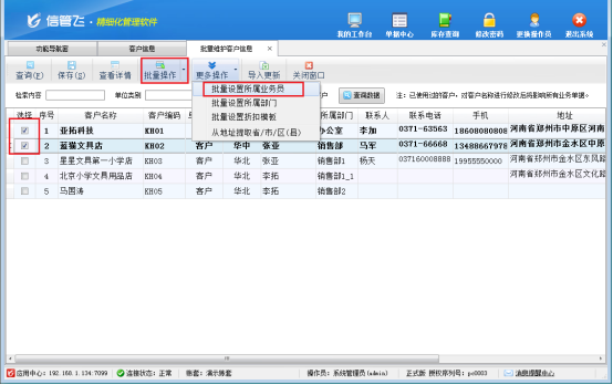 在企業的日常運營中,客戶信息管理是進銷存業務的關鍵環節。尤其是客戶所屬業務員的分配,直接關系到銷售跟進的效率與精準度。信管飛系列軟件,涵蓋信管飛 RMS、信管飛倉庫管理軟件、信管飛送貨單軟件等,以強大的批量維護功能,為企業解決客戶信息管理難題,助力企業高效運營。 批量維護,省時省力 傳統的手動逐個設置客戶所屬業務員,不僅耗時費力,還容易出錯。信管飛軟件打破這一局限,支持批量維護客戶信息,包括客戶名稱、聯系人、電話、地址等基礎信息,以及至關重要的客戶所