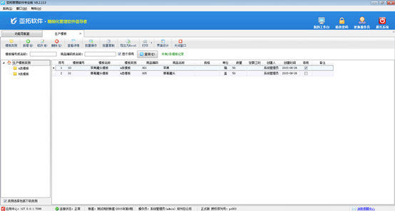 批量操作:在生產模板界面點工具欄中的“批量操作”按鈕,可以多選記錄,執行批量刪除操作。