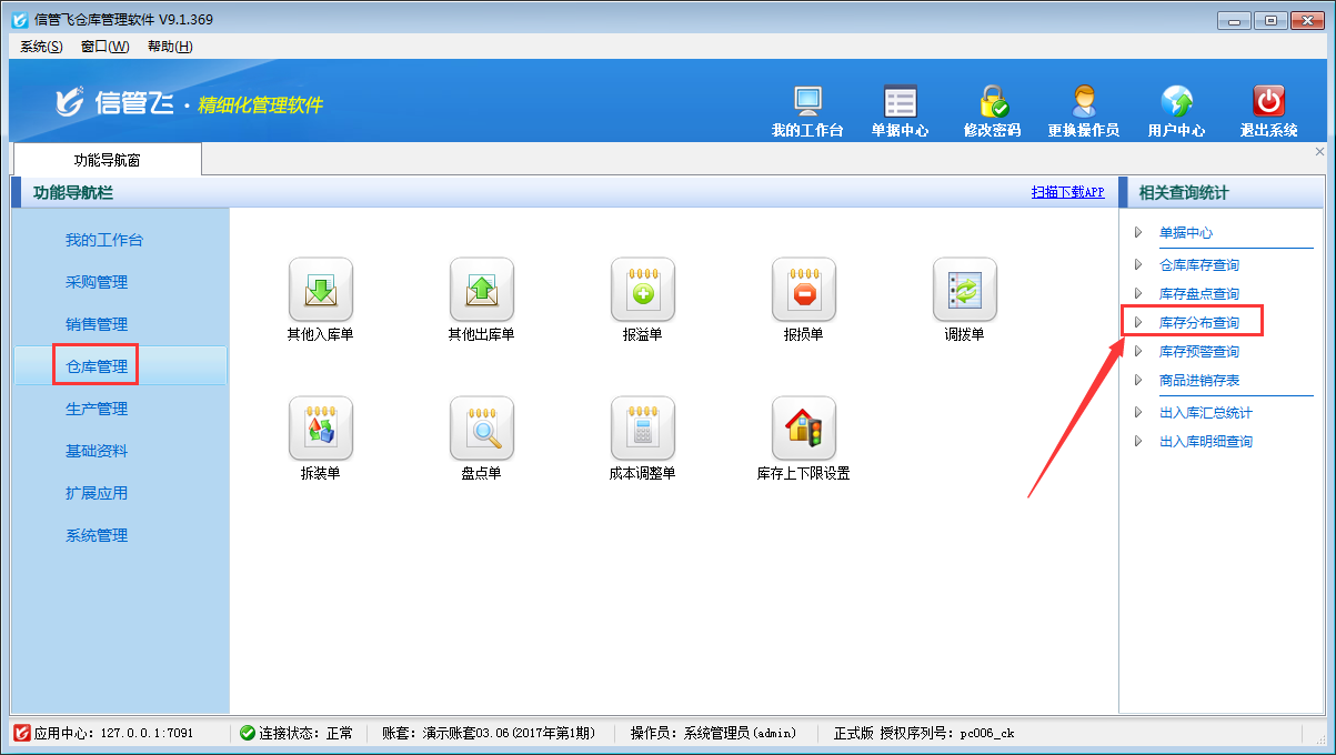 歡迎免費下載試用這款可查看商品在不同倉庫的庫存分布情況的倉庫管理軟件:信管飛倉庫管理軟件。