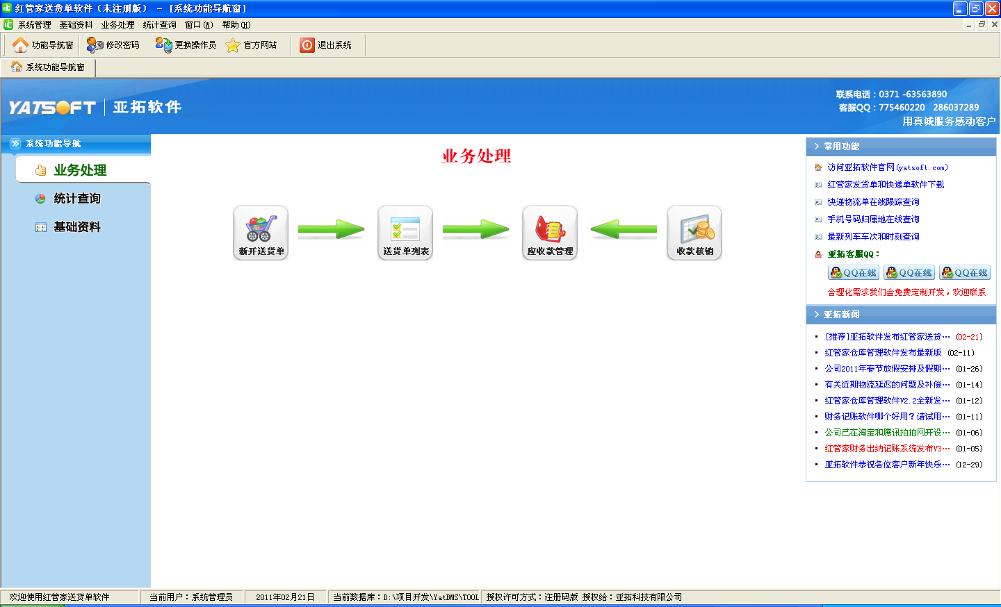 紅管家送貨單軟件是一款針對中小型企業開發的集送貨管理(發貨管理)、銷售收款(應收款管理)等功能為一體的送貨管理軟件。軟件具有程序輕盈,運行穩定的特點,是廣大店鋪/商鋪/賣場柜臺/銷售型公司快速實現企業管理信息化的首選軟件!通過本軟件提供的發貨管理和收款結算管理功能,讓您輕松告別手工開單、人工結算時代,高效、科學、準確的實現業務管理的無紙化和信息化!