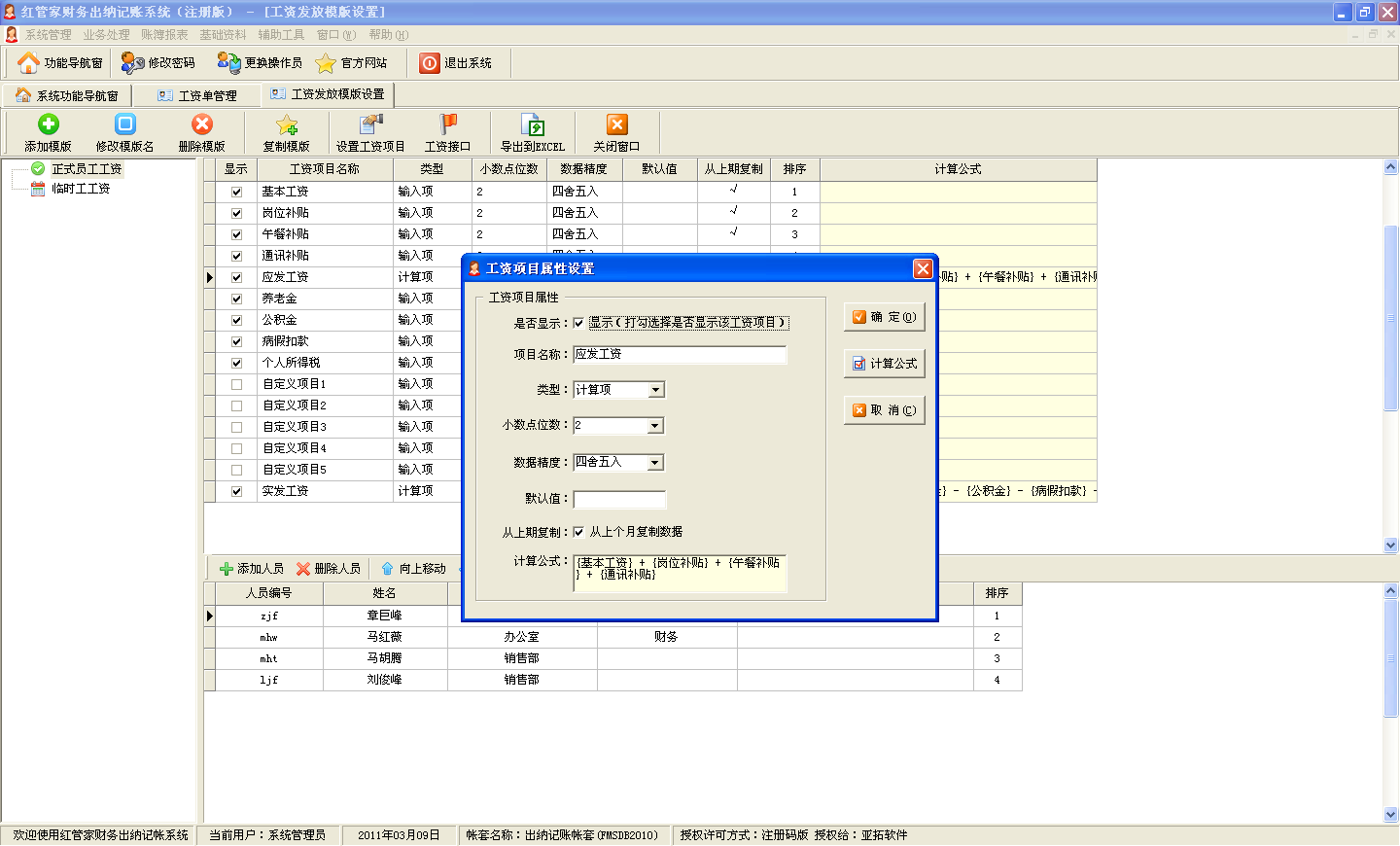 1、增加工資管理功能,支持工資項目自定義(可定義工資項目、計算公式、是否從上月復制),提供工資單審核、簽領管理,可按照部門/年度/工資項目進行各種分析和統計。