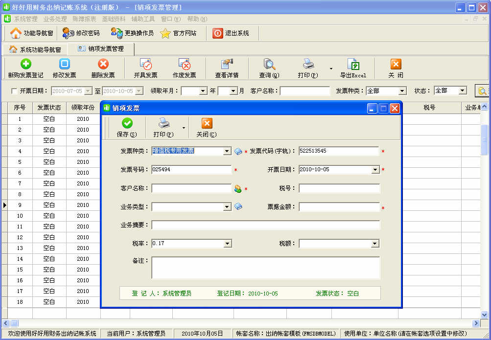 亞拓軟件最新發布《好好用財務出納記賬系統》V3.0(Build 399)下載地址:http://www.uzaiuzai.com/download/FPSetup_Msde.exe更新日期:2010.10.24程序版本: V3.0(Build 399)(1)完善了發票管理功能,進項發票(別人開的發票)和銷項發票(企業開出的發票)能夠分別進行統計和查詢。支持部分省份金稅(普通聯網發票)數據的