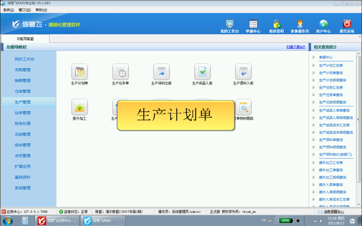 介紹信管飛RMS生產(chǎn)計(jì)劃單的主要功能和操作步驟。